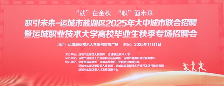 为深入学习贯彻党的二十届四中全会精神,全面落实党中央、国务院对高校毕业生就业创业工作的决策部署,助力就业服务提质增效,11月1日,运城市盐湖区2025年大中城市联合招聘暨运城职业技术大学高校毕业生秋季专场招聘会在我校成功举办。